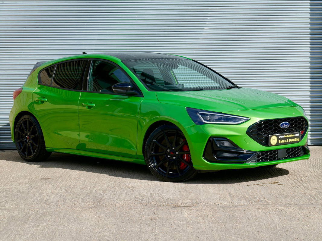 This 1 owner Mean Green Focus ST Track Pack was first registered in December 2023 on a 73 plate and has covered a mere 9,217 miles from new backed by a full Ford service history last carried out in December 2025 at 7,759 miles. Fantastic condition all round, wheels are unmarked and tyres have plenty of tread. 2 keys, Ford warranty until December 2026. To find out more please call our sales team today. PX and finance available, don't forget to ask about our Gyeon ceramic coating!